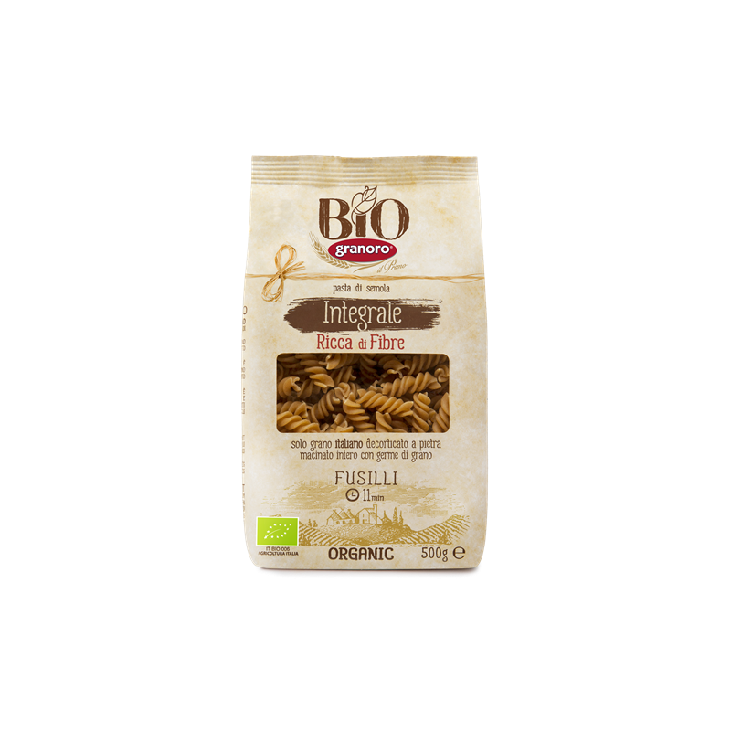 A deliciuos wholesome wholegrain pasta made by the artisans at Granoro in Bari, Italy, using solely 100% organic Italian semolina. Rich in fibre with just one portion giving you 30% of your daily recommended intake.| Energy | 1487kJ / 355kCal |